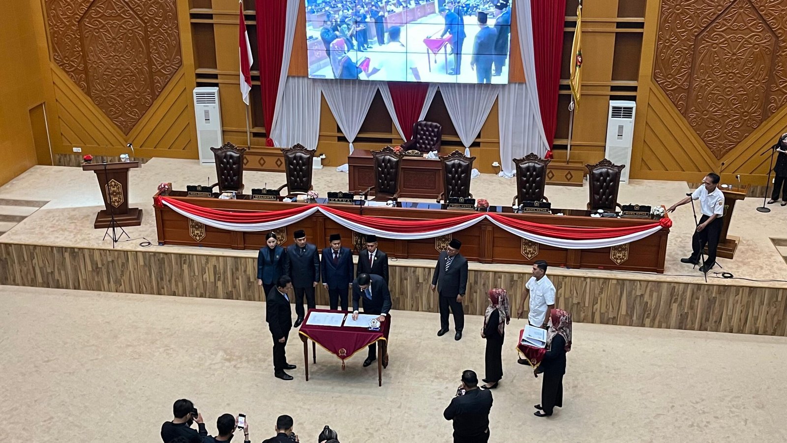 Teks: Proses Penandatanganan Draf Penarikan Raperda di Dalam dan di Luar Propemperda serta Kesepakatan Bersama Raperda di Luar Propemperda Kota Samarinda Tahun 2025