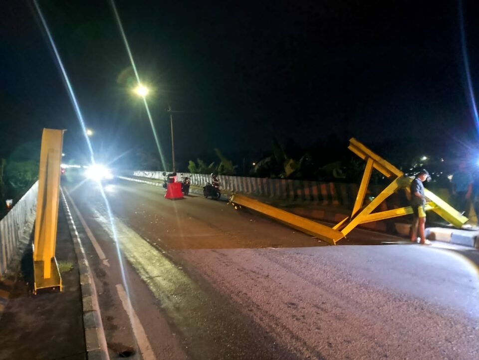Baru Difungsikan, Portal Jembatan Mahulu Roboh di Tengah Minimnya Penerangan