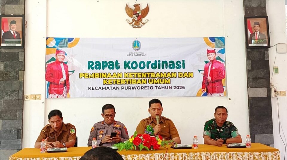 Hal ini terlihat dalam kegiatan Rapat Koordinasi (Rakor) Pembinaan Ketentraman dan Ketertiban Umum (Trantibum), yang digelar di Pendopo Kecamatan Purworejo, Kota Pasuruan, Jawa Timur.