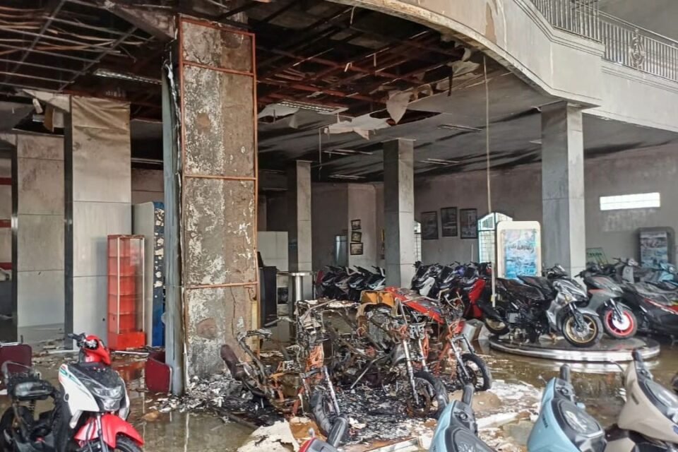 Teks: Kondisi Dealer Yamaha Antasari pasca kebakaran (Infosatu.co/Firda)