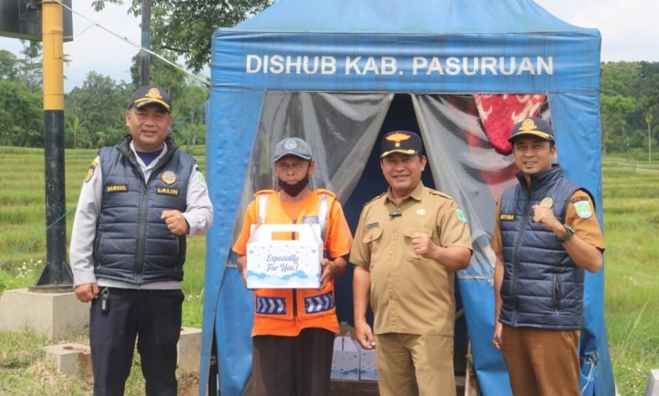 Pasuruan, infosatu.co – Menjelang pergantian tahun baru 2025 ke 2026, Dinas Perhubungan (Dishub) Kabupaten Pasuruan, Jawa Timur (Jatim) membagikan ratusan bingkisan kepada relawan palang pintu perlintasan sebidang kereta api.