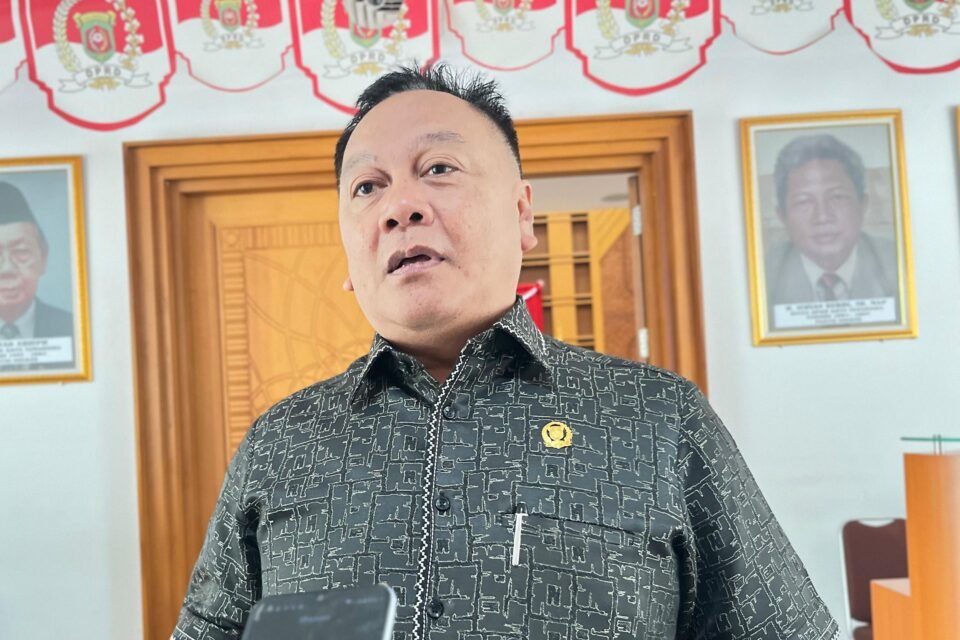 Teks: Ketua Panitia Khusus (Pansus) LKPJ Kepala Daerah Kota Samarinda, Achmad Sukamto saat memberikan keterangan pers (Infosatu.co/Firda)
