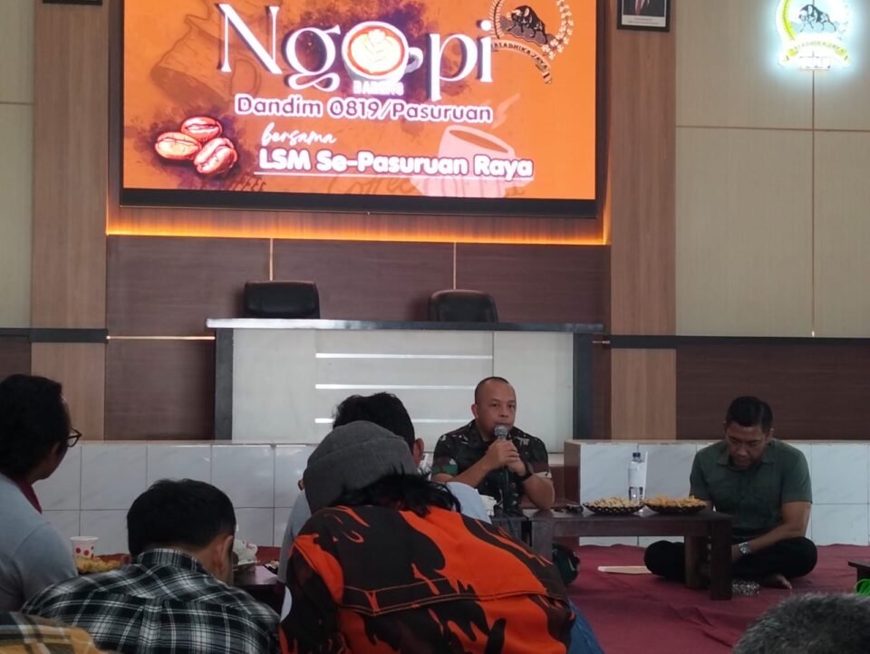Melalui kegiatan “Ngopi Bareng Dandim”, sekitar 70 ketua Lembaga Swadaya Masyarakat (LSM) se-Pasuruan Raya dikumpulkan dalam satu forum hangat namun penuh gagasan.