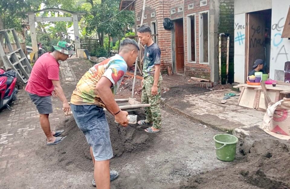 Kebersamaan dan kekompakan terlihat jelas di lokasi, mencerminkan semangat kemanunggalan TNI dengan rakyat dalam membangun desa.