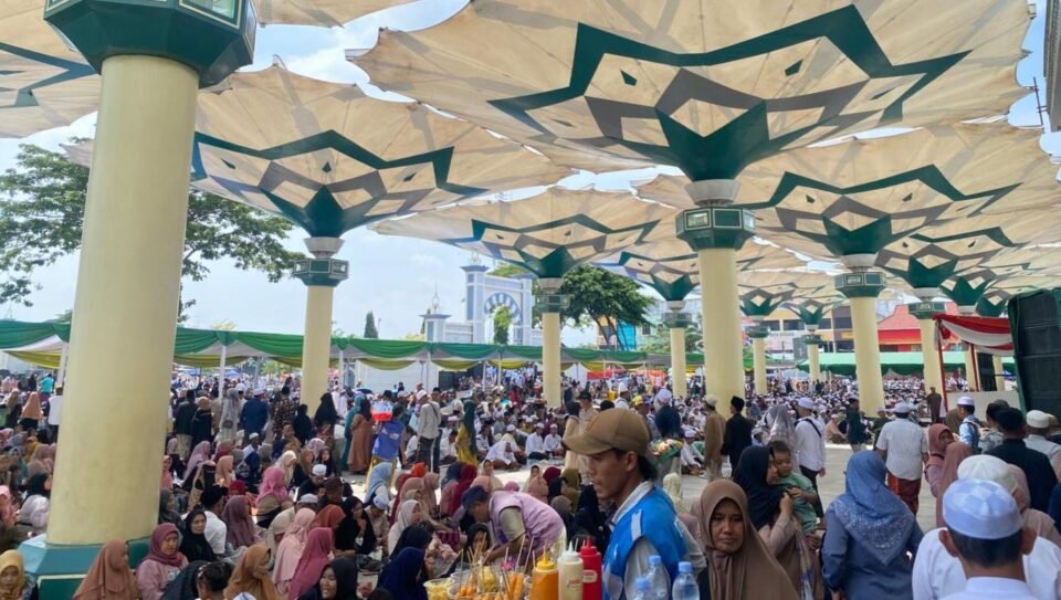 Ribuan jamaah dari berbagai wilayah tampak memadati area masjid sejak pagi hari.