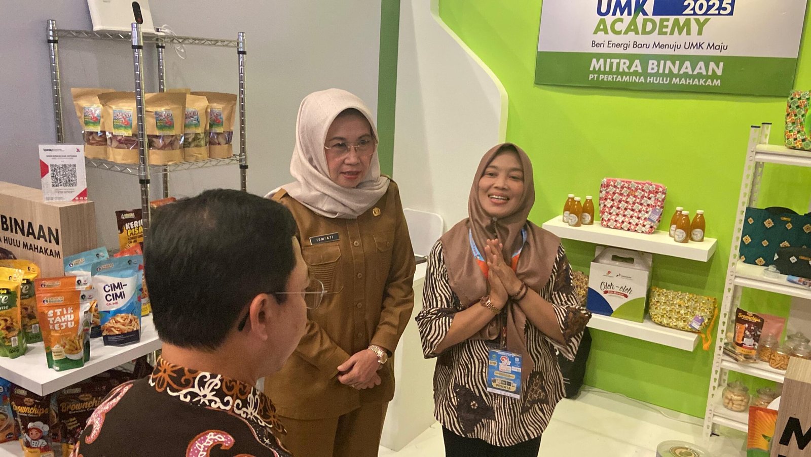 Teks: Kepala Badan Pendapatan Daerah (Bapenda) Kaltim sekaligus Asisten III Bidang Administrasi Umum Setda Provinsi Kaltim, Ismiyati ketika mengunjungi beberapa tenda OPD dan UMKM yang hadir