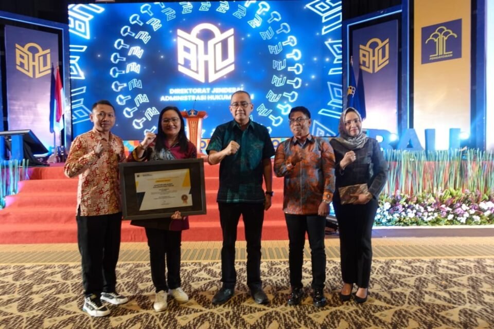 Penghargaan tersebut diberikan oleh Direktur Jenderal Administrasi Hukum Umum Cahyo Rahardian Muzar kepada Kepala Divisi Pelayanan Hukum dan HAM Dulyono.