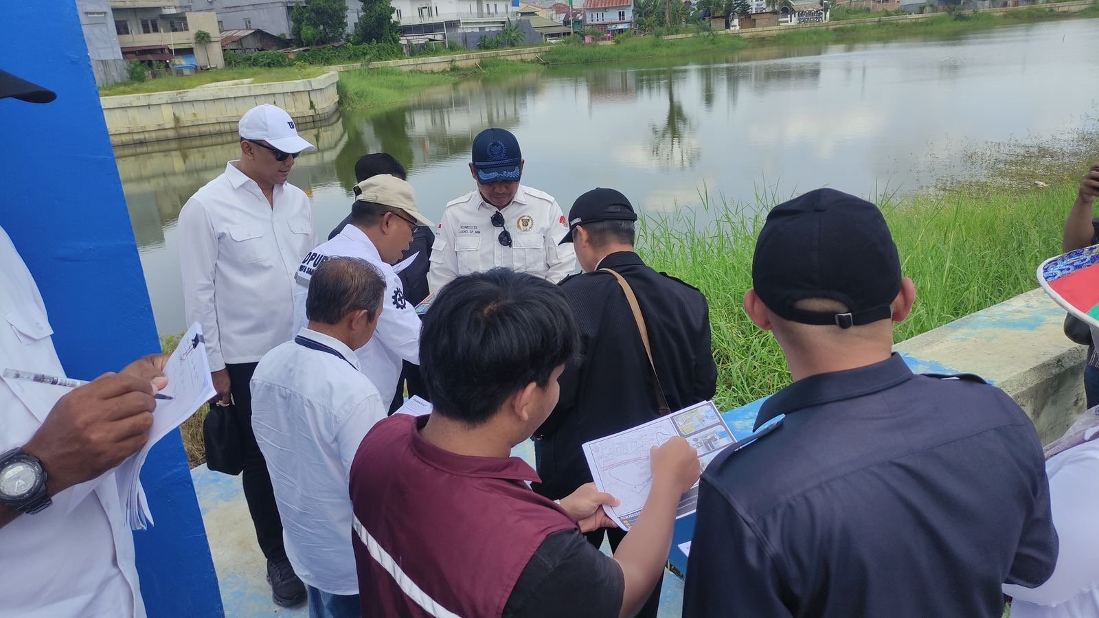 Dalam peninjauan lapangan, Deni menyampaikan bahwa kolam retensi seluas kurang lebih 2,6 hektare tersebut secara fisik telah rampung, termasuk pembangunan pintu airnya.