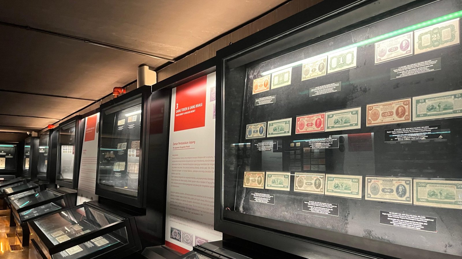 Menelusuri lorong per lorong, pengunjung dapat melihat berbagai mata uang logam dan kertas dari berbagai periode, mulai dari era kerajaan, kolonial, hingga masa awal kemerdekaan.