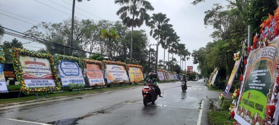 Puluhan karangan bunga ucapan selamat berjejer rapi yang dikirim dari berbagai kalangan. Mulai dari tokoh masyarakat, pihak swasta, perusahaan, beberapa organisasi perangkat daerah (OPD), hingga anggota legislatif.