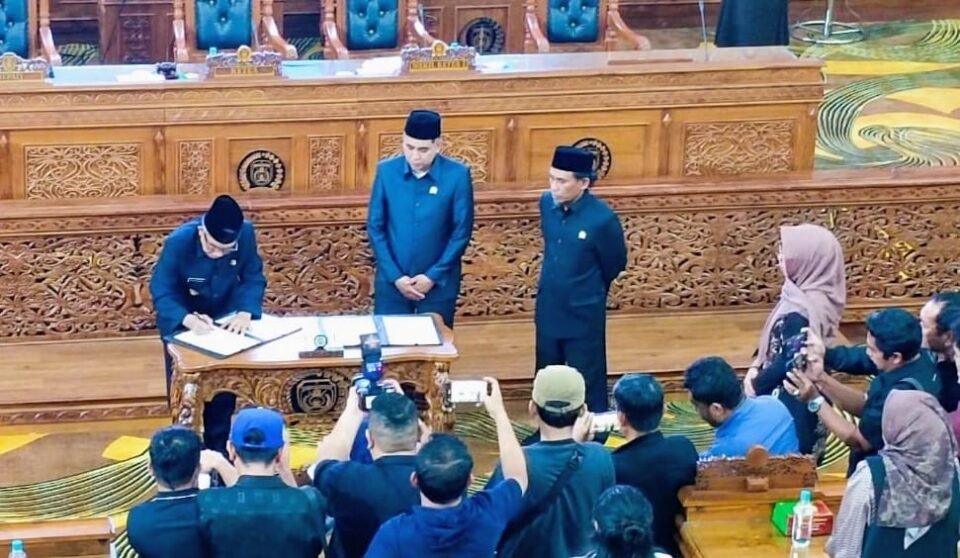 Penandatanganan dilakukan dalam Rapat Paripurna di Gedung DPRD Kutim, Kalimantan Timur (Kaltim), Jumat, 21 November 2025.