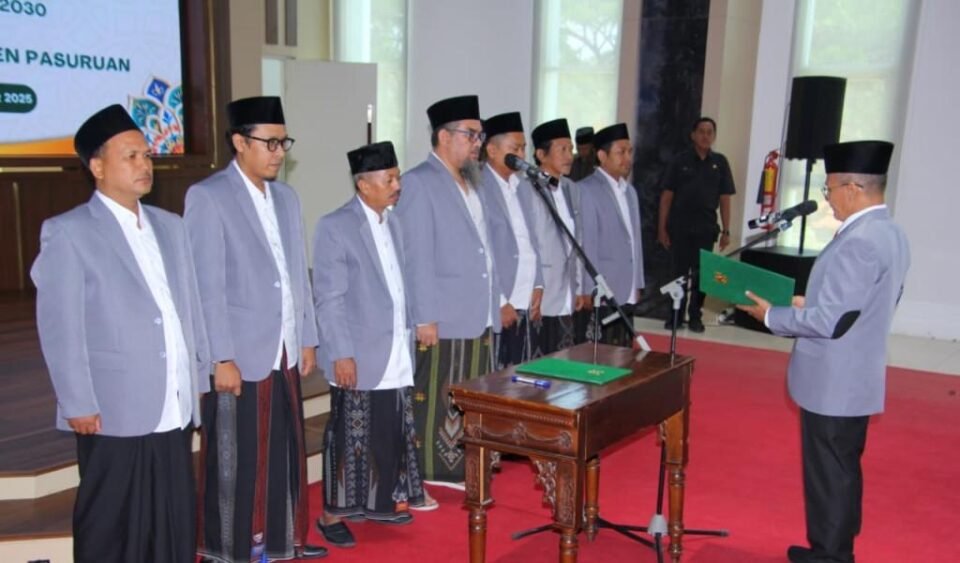 Ketua dan para anggota Dewan Pesantren Kabupaten Pasuruan masa bhakti 2025-2030 tersebut, dikukuhkan Wakil Bupati Pasuruan, Shobih Asrori di Auditorium Mpu Sindok, Komplek Kantor Bupati Pasuruan, Jawa Timur (Jatim), Selasa 28 Oktober 2025.