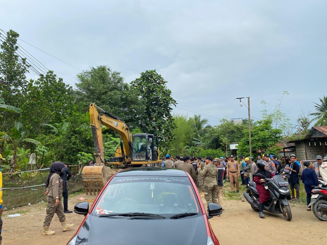 Aparat keamanan dan petugas lapangan berupaya menjaga suasana agar tidak menimbulkan gesekan, sementara warga diberikan waktu untuk memindahkan barang-barangnya.