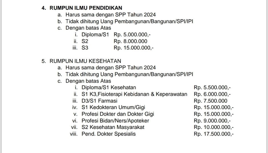 – Kedokteran: maksimal Rp15 juta