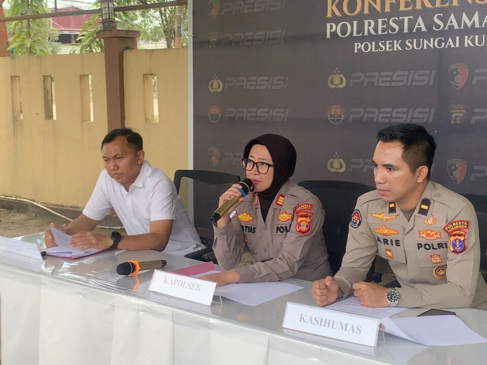 Teks: Kapolsek Sungai Kunjang, AKP Ning Tyas Widyas Mita saat konferensi pers, Rabu,4/3/2026 (Infosatu.co/Andika)