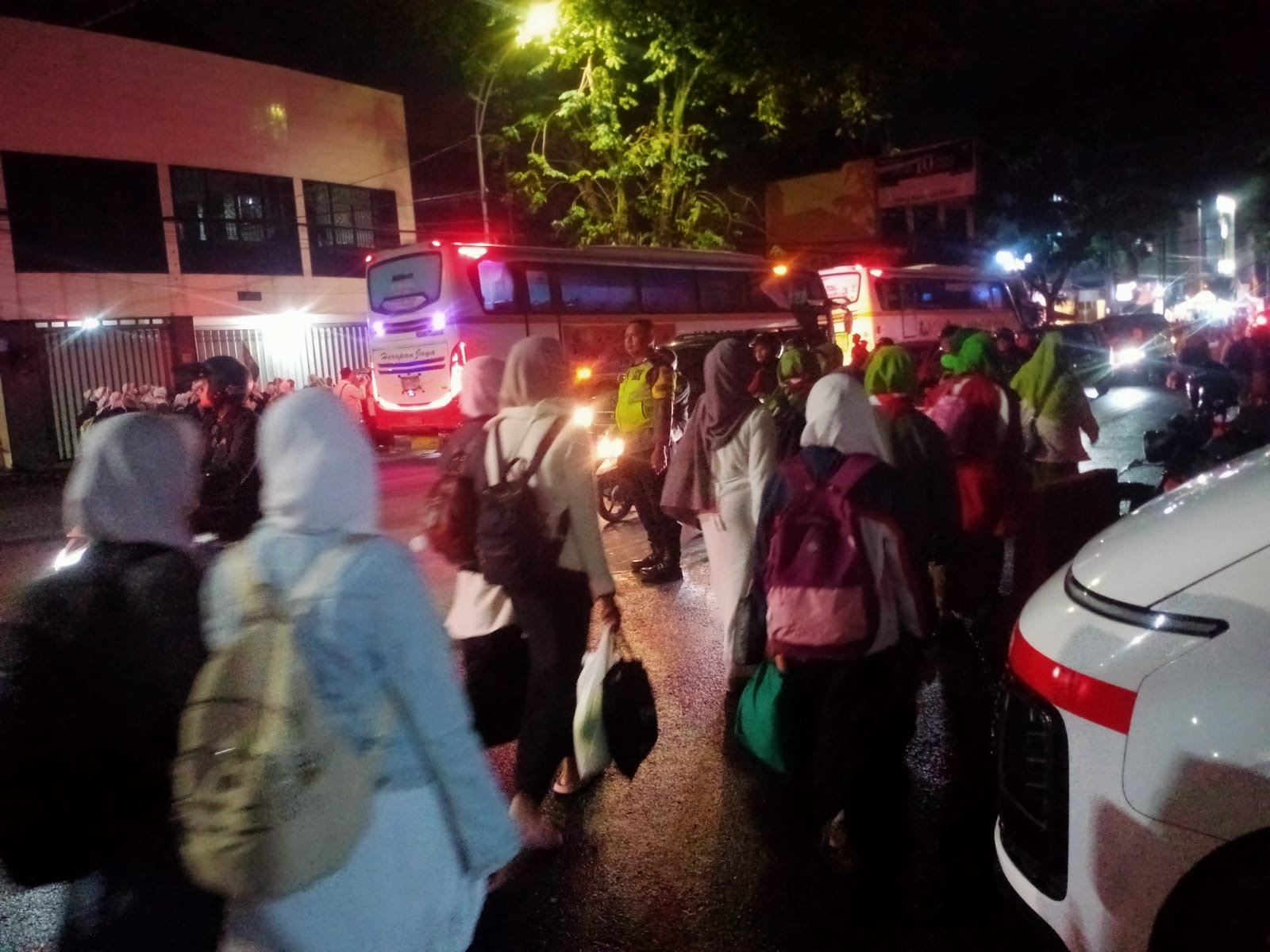 Kepadatan arus lalu lintas juga terlihat sejak malam hari. Sejumlah kendaraan roda dua maupun roda empat tampak memadati ruas jalan sekitar lokasi kegiatan.