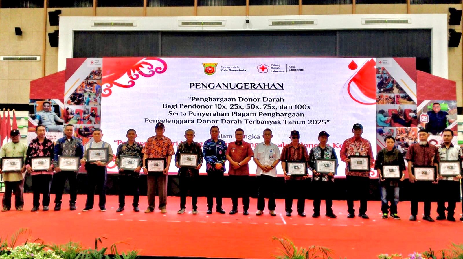 PMI Samarinda memberikan Penghargaan Donor Darah kepada pendonor sukarela dengan capaian luar biasa: 10 kali, 25 kali, 50 kali, 75 kali, hingga 100 kali donor berupa piagam dan emas.