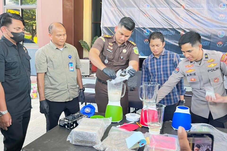 Ribuan gram sabu dan ratusan pil ekstasi dimasukkan ke dalam mesin blender berisi air hingga larut tak tersisa, sementara tumpukan ganja kering dipastikan lenyap menjadi abu melalui proses pembakaran.