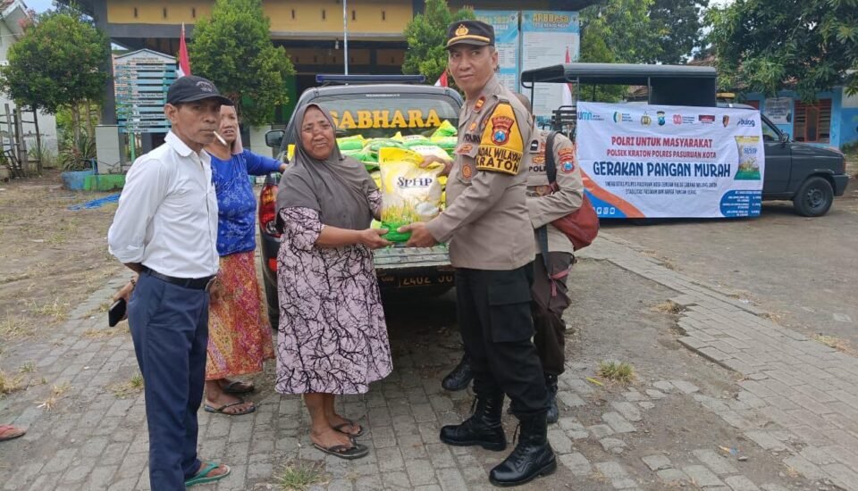 Pasuruan, infosatu.co — Polsek Kraton Polres Pasuruan Kota menggelar kegiatan Gerakan Pangan Murah di Desa Bendungan, Kecamatan Kraton, Kabupaten Pasuruan, Jawa Timur (Jatim).
