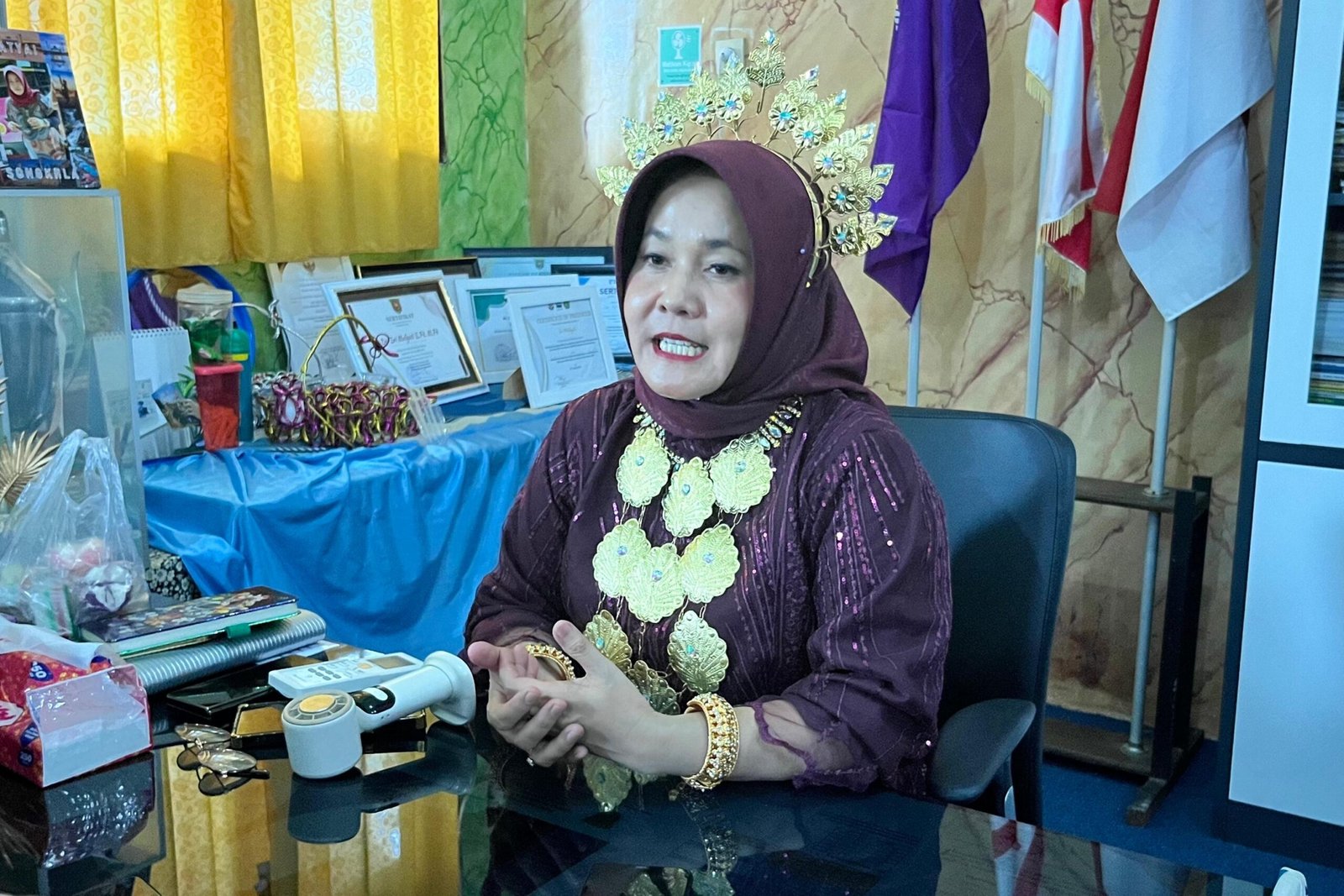 Teks: Kepala SDN 007 Samarinda Ulu, Sri Mulyati saat memberikan keterangan pers (Infosatu.co/Firda)