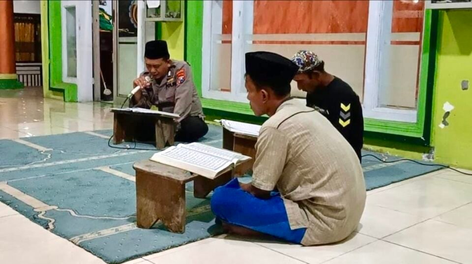 Dalam suasana penuh kekhusyukan, Kanit Binmas Polsek Kraton, Bripka Rendra Wahyu Krisdianto, tampak berbaur bersama jamaah mengikuti tadarus Al-Qur’an.