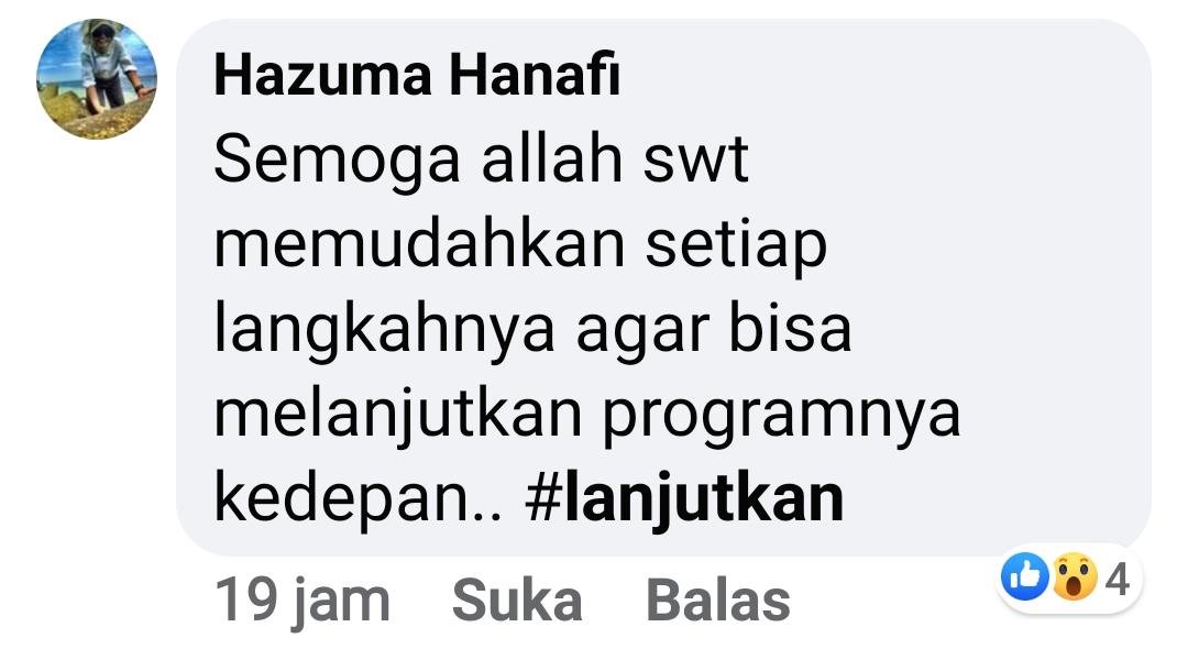 “Semoga Allah SWT memudahkan setiap langkahnya agar bisa melanjutkan programnya kedepan,” ungkap Hazuma Hanafi.