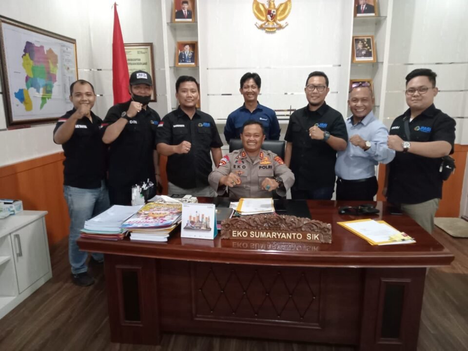 Lahat, infosatu.co – Ketua Jaringan Media Siber Indonesia (JMSI) Pengcab Lahat, Sumatera Selatan, Robiansyah bersama pengurus dan anggota melakukan silaturahmi dengan Kapolres Lahat yang baru AKBP Eko Sumaryanto, di ruang kerja Kapolres Lahat.