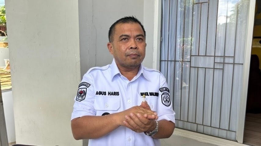 Teks: Wakil Wali Kota Bontang Agus Haris saat diwawancarai awak media. (Infosatu.co/Adi)