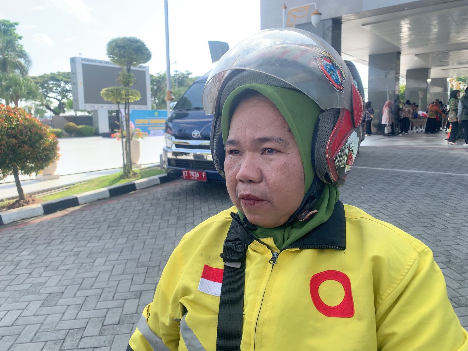 Teks: Pengemudi Maxim, Ati saat memberi keterangan usai mendapatkan Takjil Gratis (Infosatu.co/Andika)