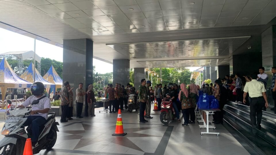 Teks: Suasana pembagian Takjil Gratis di halaman Kantor Gubernur Kaltim (Infosatu.co/Andika)